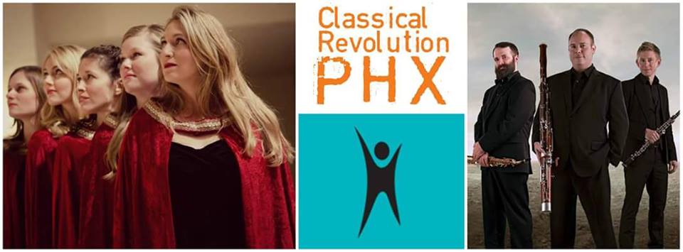 Join Classical Revolution Phx as we present two local ensembles, Solis Camerata and Paradise Winds, FREE of charge to the public on Sunday morning, April 19, 2015 at 10:30 a.m. at Humanist Community Center, 627 W. Rio Salado Parkway, Mesa. Each ensemble will rotate between selections with educational commentary for about an hour followed by Q&A with the audience.