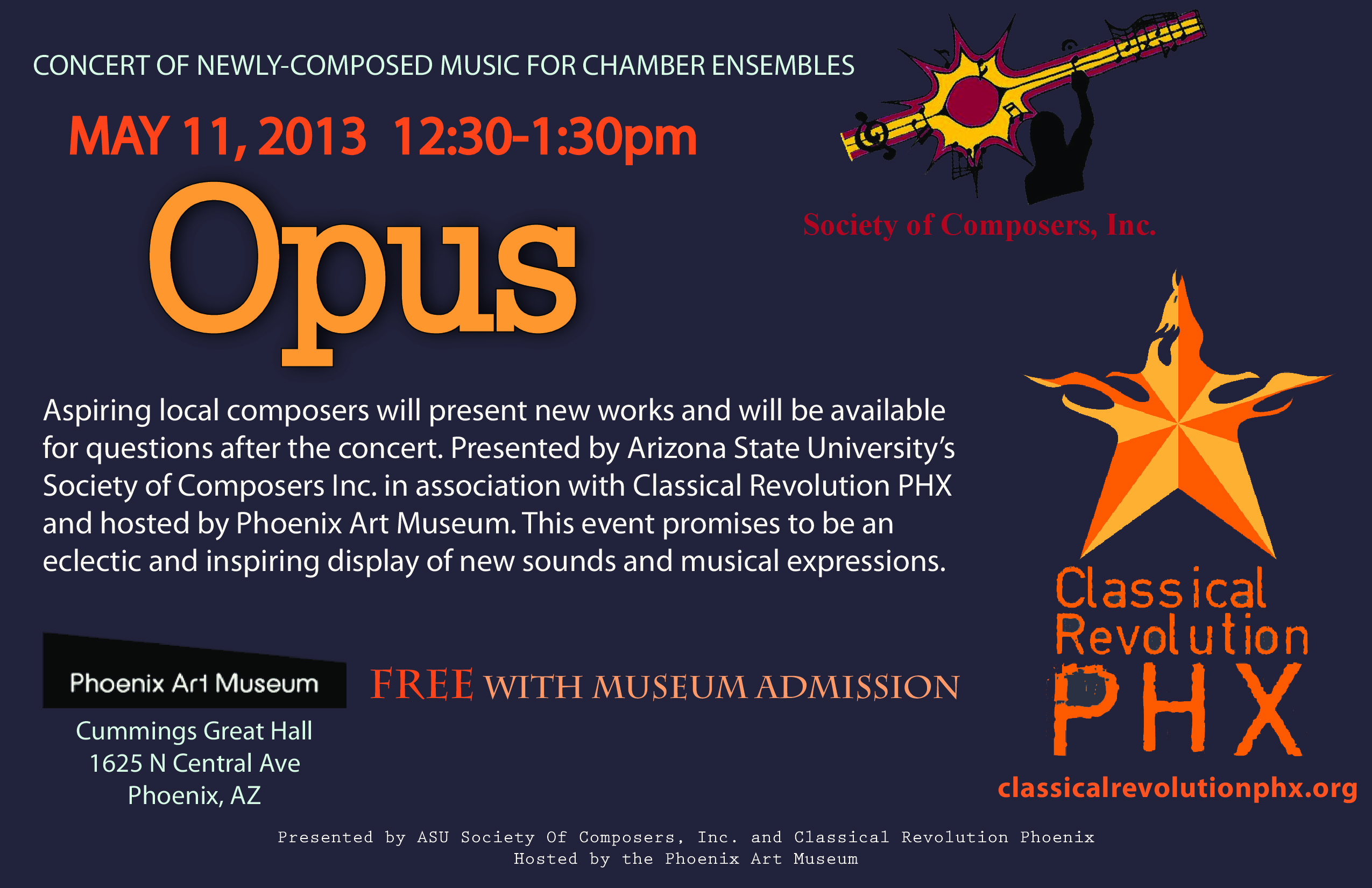 Presented by ASU’s Society of Composers Inc., Classical Revolution PHX, and Phoenix Art Museum